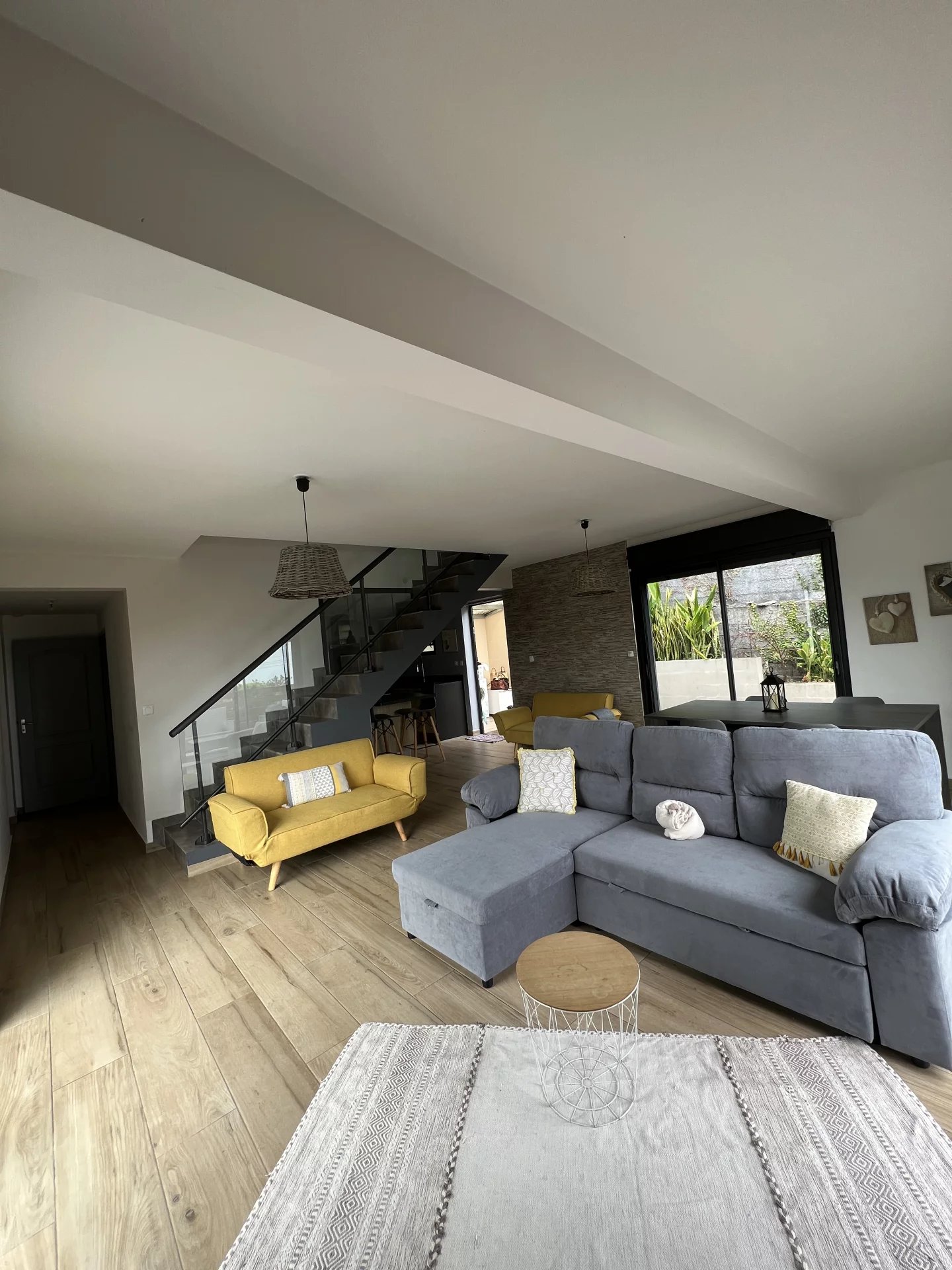 - Une cuisine moderne entièrement équipée ouverte sur un séjour lumineux.