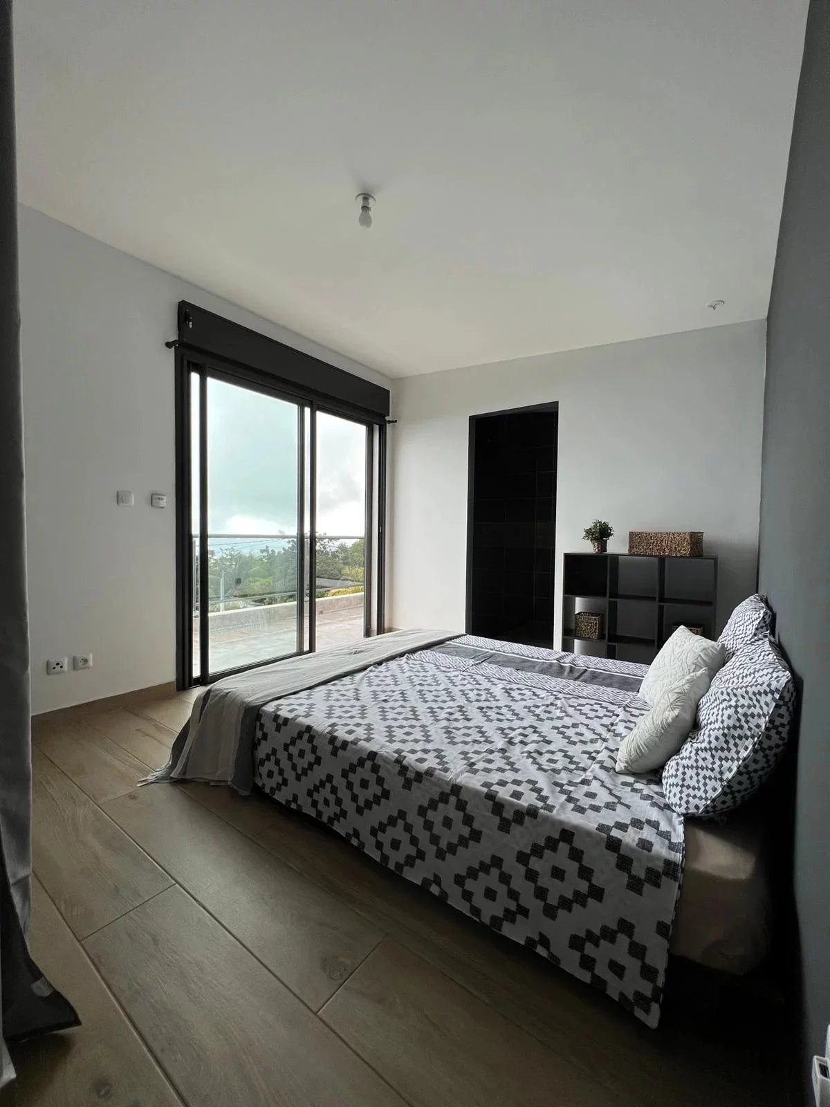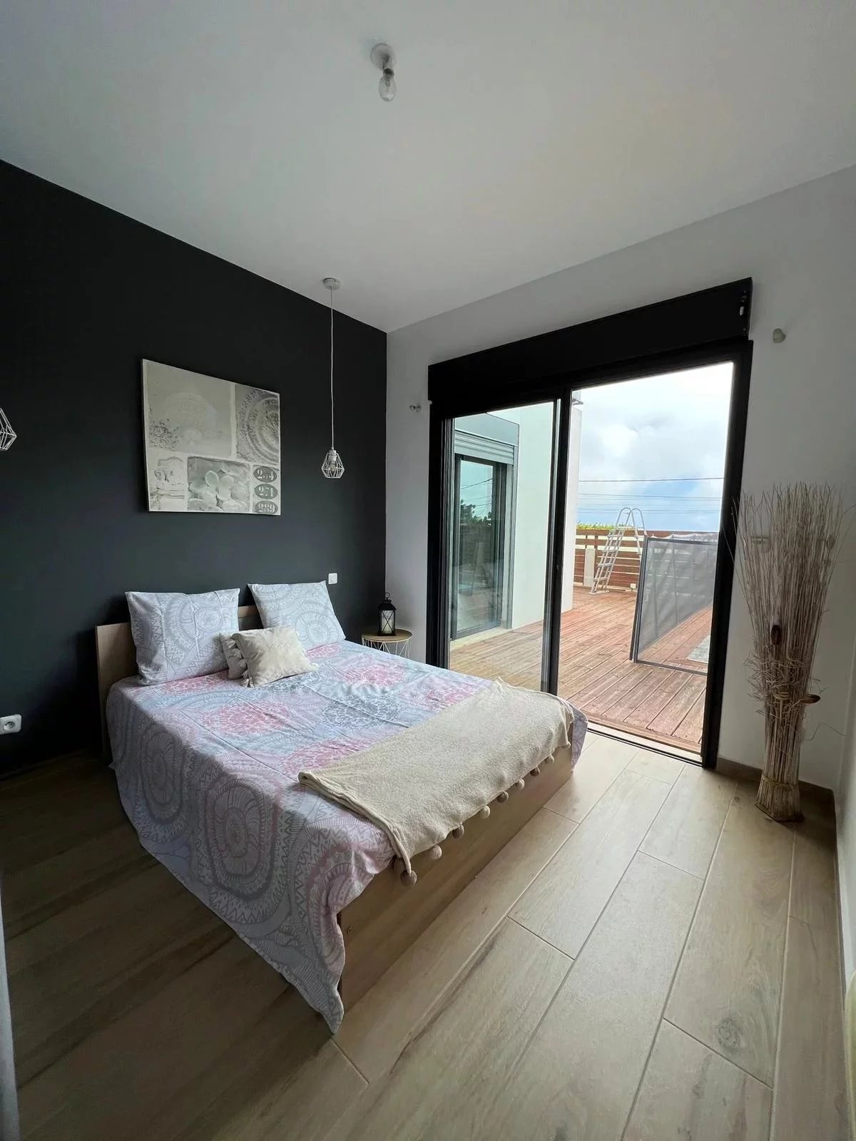 À l'étage : Une suite parentale avec salle d'eau privée et accès direct à une terrasse offrant une superbe vue mer.