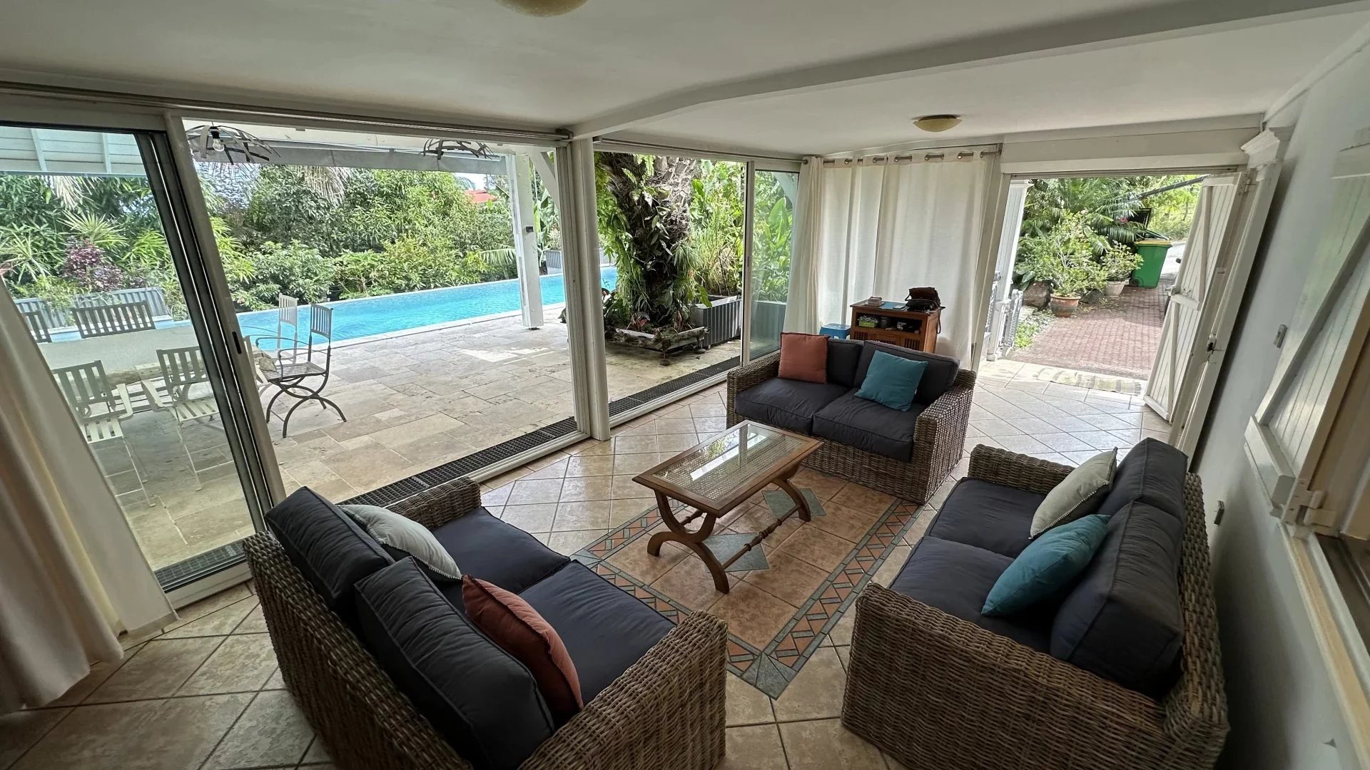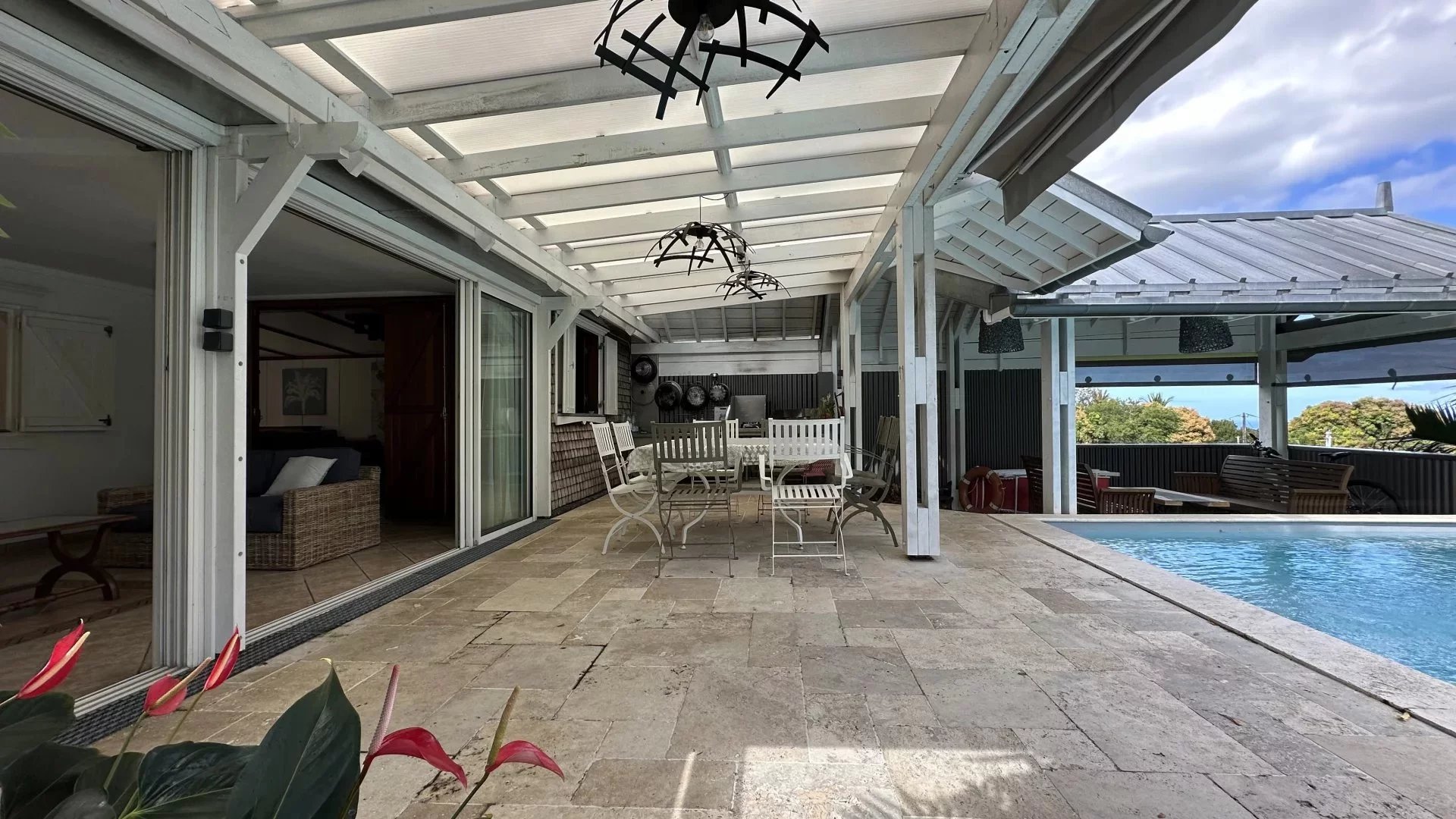 Le CABINET LEMERLE RIVIERE vous présente cette incroyable maison F6 entièrement meublée de plus de 133m² habitables, profitant d'un superbe espace extérieur de 900m² avec piscine au sel (dimensions :(L12*L4), terrasse couverte, cuisine d'été et places stationnements dans un décor verdoyant et calme.