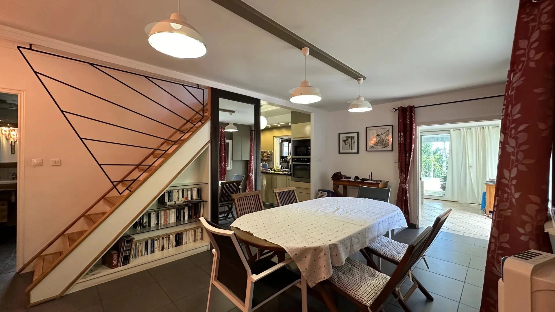 Au rez-de-chaussée, vous serez séduit par une grande véranda baignée de lumière grâce à ses vastes baies vitrées donnant sur la piscine. Elle est ouverte sur un salon accueillant, une salle à manger conviviale et une cuisine entièrement équipée. Toujours au rez-de-chaussée, une première chambre avec placard et climatisation réversible, une salle d'eau avec WC, ainsi qu'une buanderie sont à votre disposition. À l'étage, deux chambres climatisées accessibles par des escaliers sécurisés vous attendent pour des nuits paisibles.