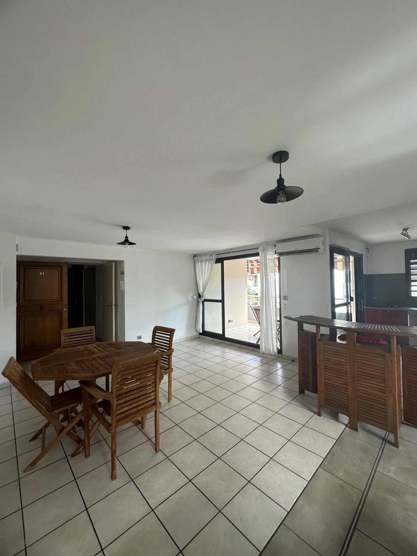 Bel espace de vie climatisé de pratiquement 40m² avec cuisine équipée ouverte sur séjour et donnant accès à la terrasse couverte. Cet appartement dispose de deux chambres dont une climatisée avec placard donnant aussi accès à la terrasse. Une salle d'eau avec rangement ainsi qu'un WC séparé viennent compléter ce bien. Ce dernier est vendu meublé avec un box fermé au sous-sol ainsi qu'une place de parking aérienne