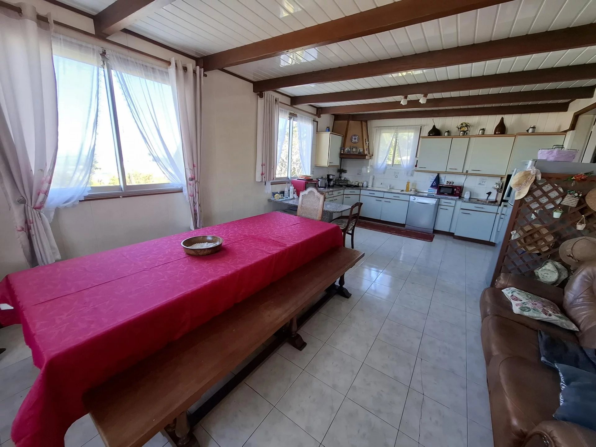 La maison principale est composée d'une cuisine aménagée avec une belle vue mer, un séjour avec coin bureau, un dégagement, trois chambres (dont une avec cabine de douche), une salle de douche avec WC, un WC séparé, un cellier et une agréable terrasse couverte de 40m² !!