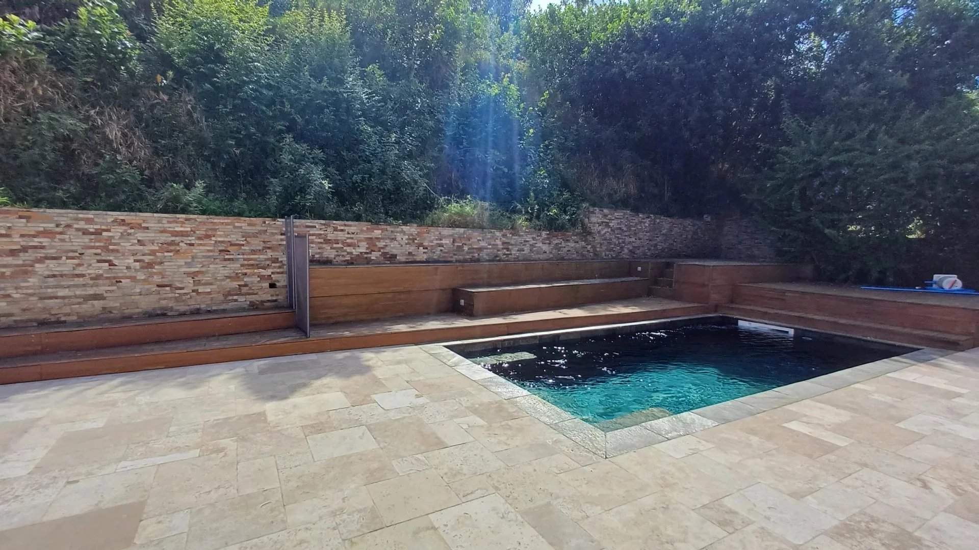 L'extérieur est très agréable avec une immense terrasse munie d'une piscine en pierre de Bali pour les baignades en toute intimité et barbecues en famille.